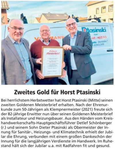 Zweites Gold für Horst Ptasinski